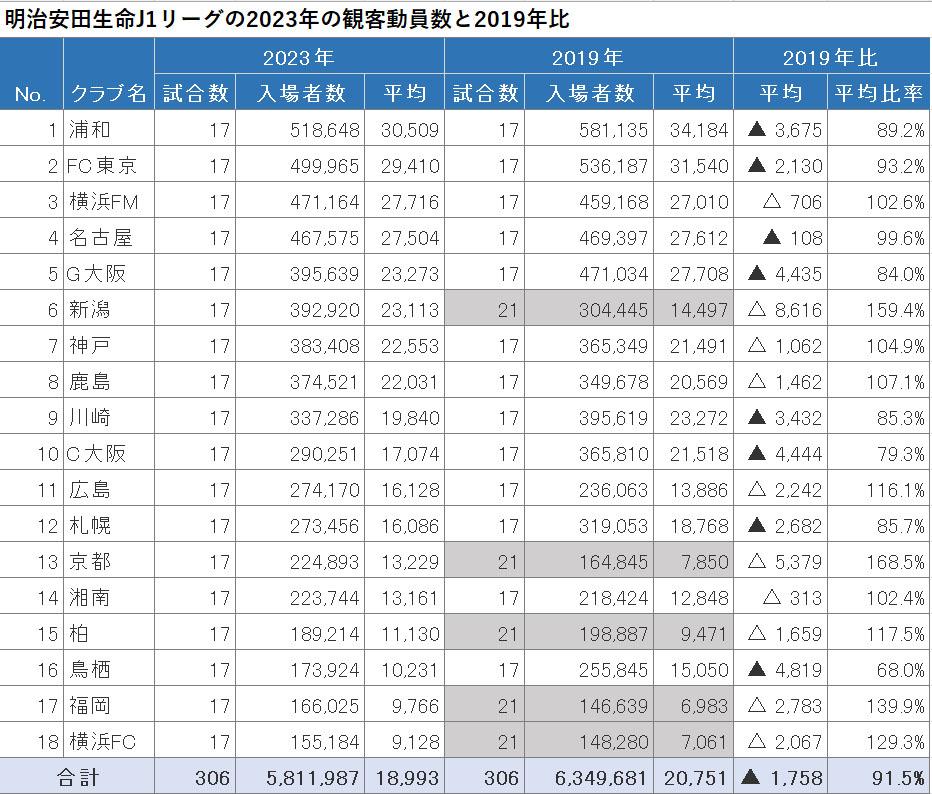 明治安田生命Jリーグの2023年シーズンのリーグ戦日程が終了した。リーグ戦に限定した観客動員数をひとつの指標として、2023年のJリーグを振り返ってみたい。