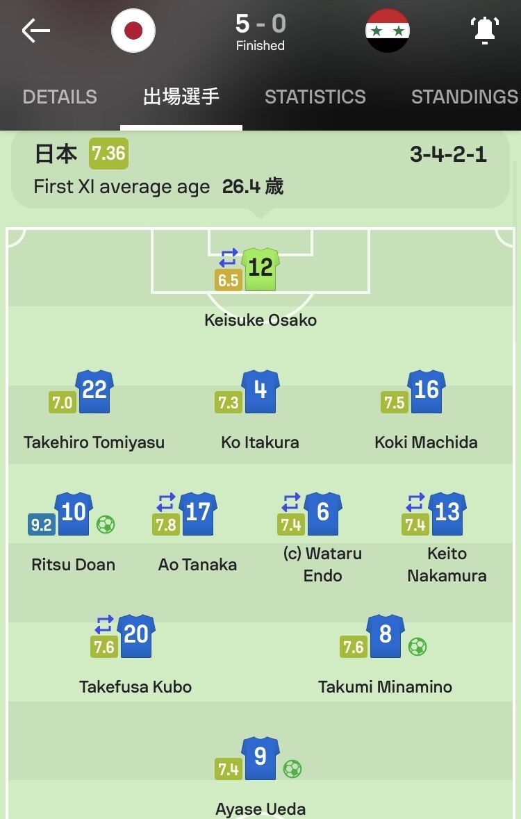 サッカー日本代表は11日、FIFAワールドカップ26アジア2次予選 兼 AFCアジアカップサウジアラビア2027予選・グループリーグB組第6節でシリア代表と対戦し5-0で勝利。この試合で森保ジャパンのパフォーマンスはどうだったのだろうか。シリア代表戦に出場した選手(出場時間の短い選手は除く)、監督のパフォーマンスをどこよりも早く採点する。