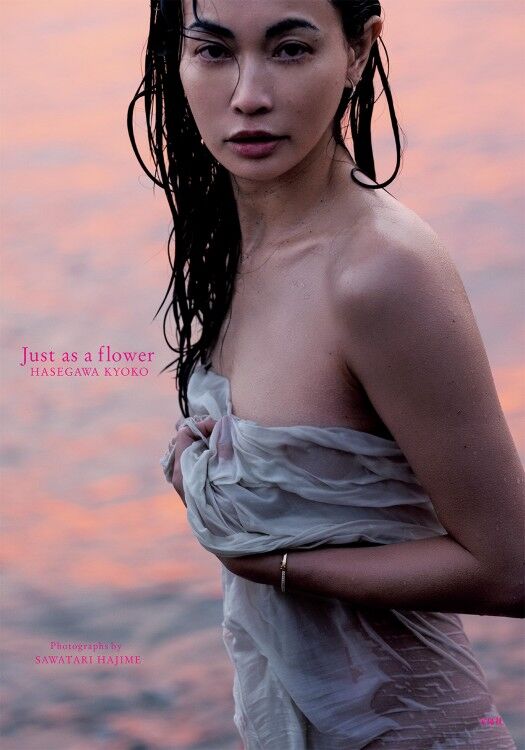 さらに、デコルテとお腹部分が大きく開いた水着を着用し、凛々しい表情で前方を見つめる長谷川さんも。46歳とは思えない肌艶に見惚れると同時に、その表情とオールバックのヘアスタイルから、クールな雰囲気が漂います。